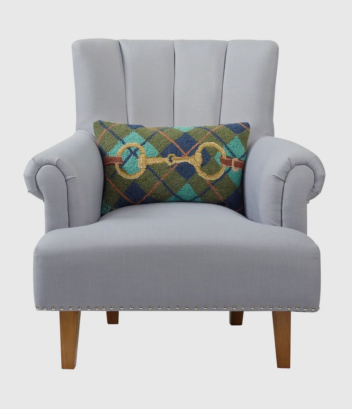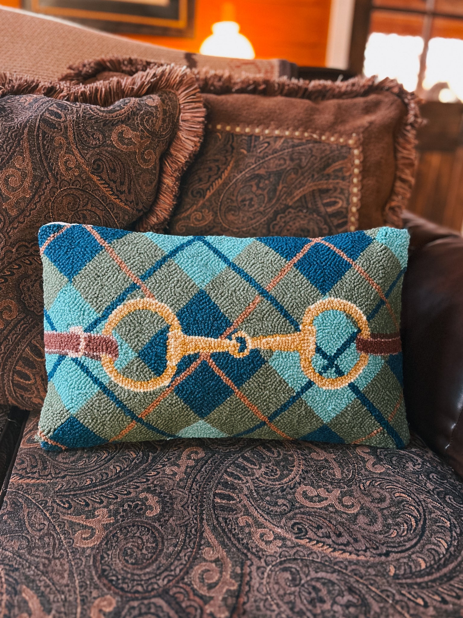 This Gingham Snaffle Hook Pillow features a 100% wool construction and a velvet backing for added comfort. Its 12X20" size makes it perfect for adding a cozy touch to any living space. Plus, the insert is included for your convenience. Crafted with durability and style in mind, this pillow is a must have for any home.