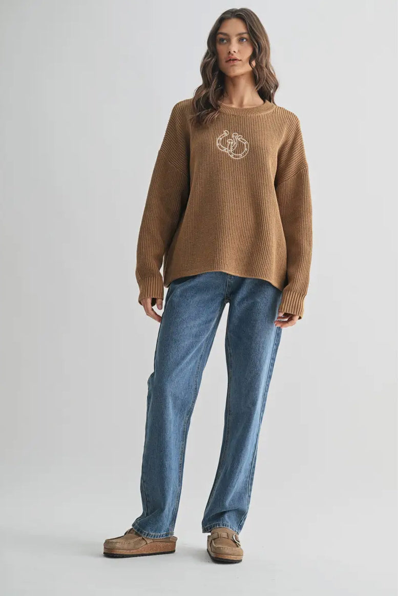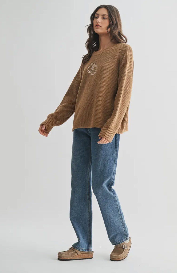 Unleash your luck with our Double Luck Knit Sweater in Mocha! This cozy sweater, with its round neck and relaxed fit, is the perfect fall companion. Stay warm and stylish all season long.