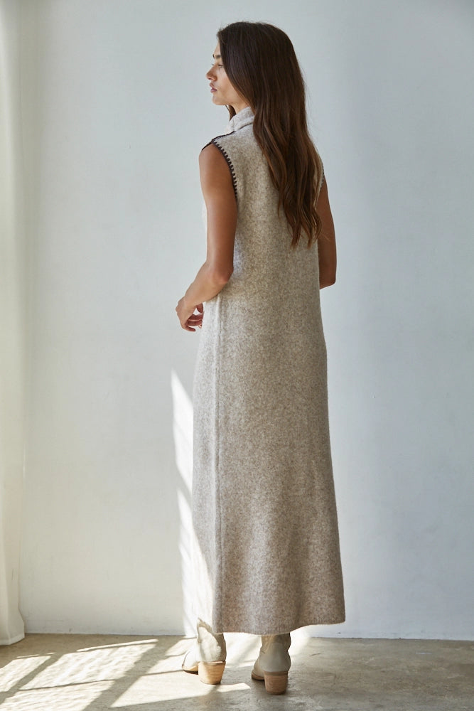 The Antonia Turtleneck Sleeveless Knit Maxi Dress - Oat