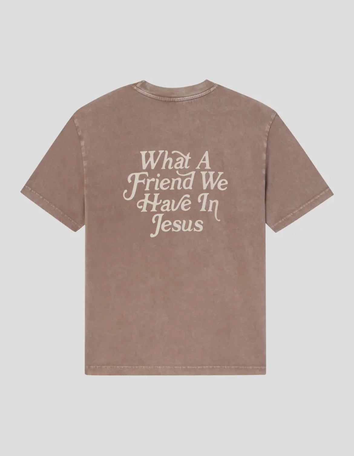 Experience the comfort and style of our What A Friend We Have In Jesus tee! Made from 100% cotton, this relaxed fit unisex shirt features a washed brown color that adds a touch of warmth and coziness. Perfect for any casual occasion, this tee is sure to be your go to choice for both worship and comfort.