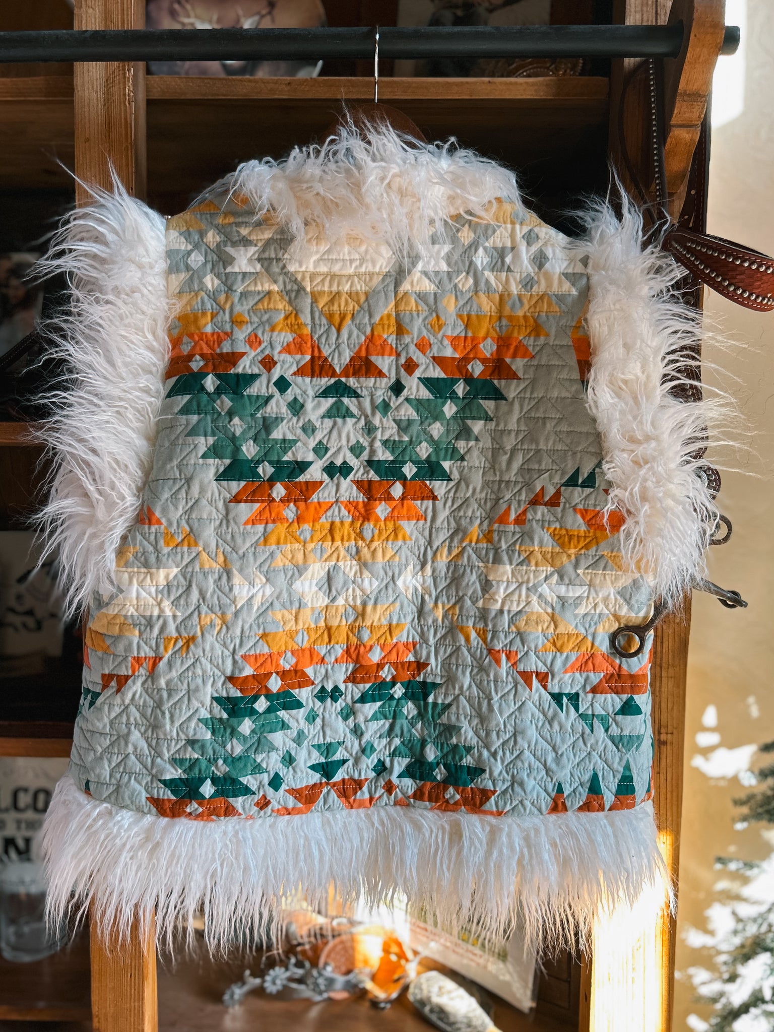 The Unami Pendleton Quilted Vest is a must have for any fashion forward individual. Hand stitched with the highest quality Pendleton quilted fabric, this vest offers supreme warmth and comfort. Its Sherpa collar adds a touch of rugged style to elevate any outfit. Stay cozy all winter long with this timeless piece.